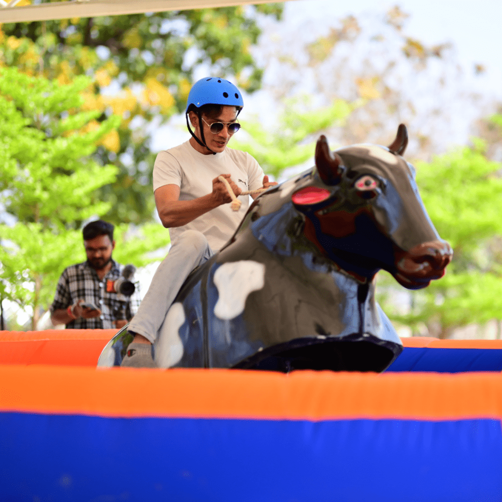 As the name suggests, a Bull ride gives you the feel of riding a wild animal and gets your adrenaline pumping. This mechanical bull ride spins, lurches, jumps and gives you many unexpected twists & turns thereby providing you with a thrilling and authentic experience. The ride is absolutely safe and its variable bucking and spinning speed makes it suitable for people of all age groups including children. This ride is not only fun for the rider but also provides an amusing experience to all the spectators as well.