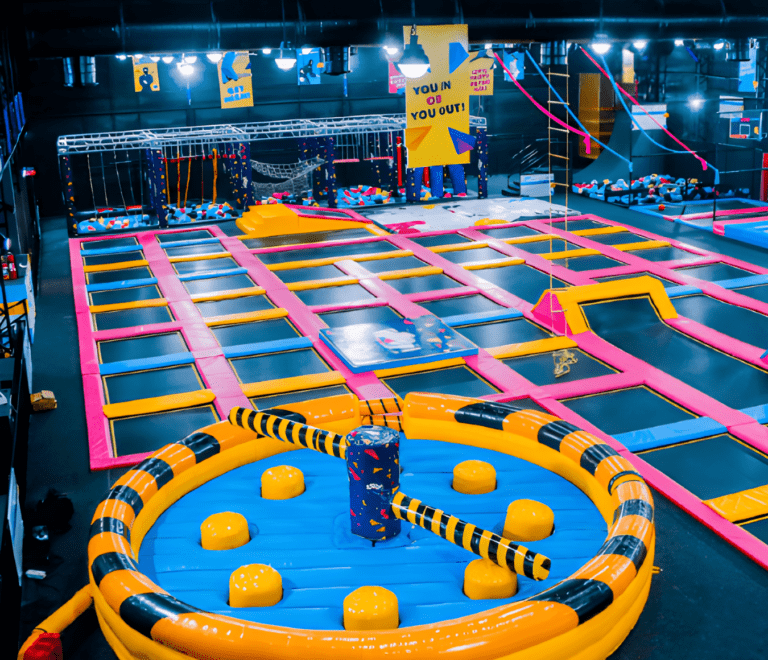 The player’s duck, dodge, and jump over two spinning arms in this game of survival. The players have to battle to stay
